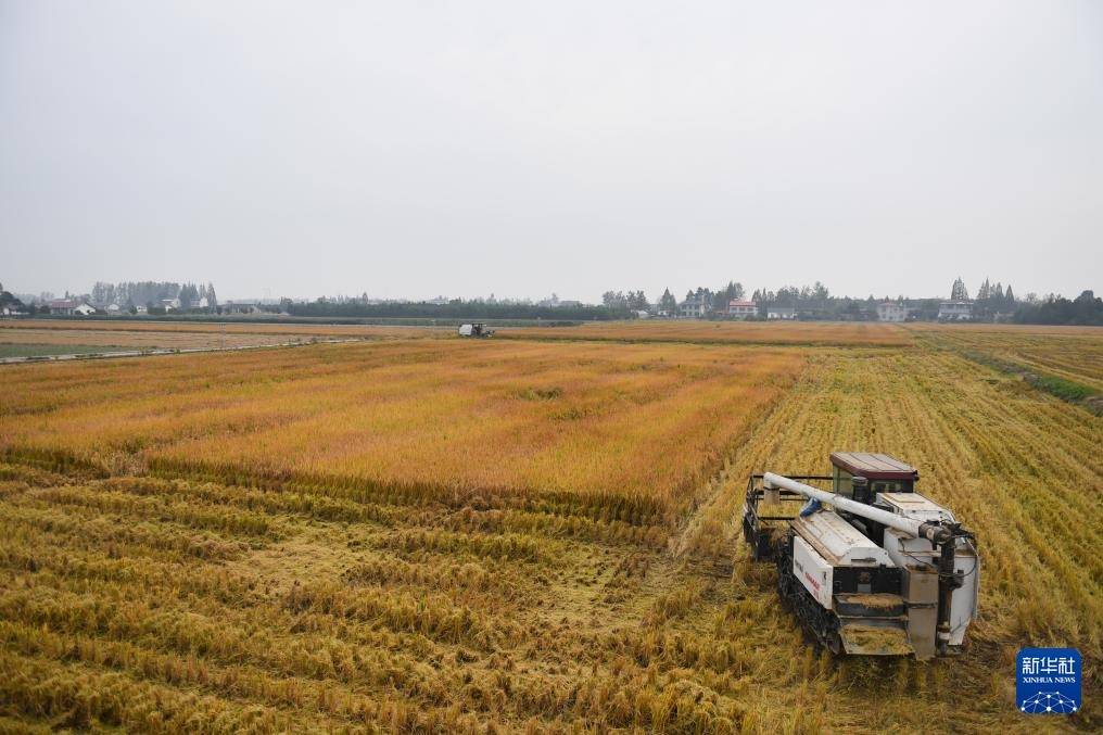 r经过耕田、育秧插秧、管护等为期8个多月的劳作后,邱彬所在的湖南省益阳市大通湖区国清农机农民专业合作社流转经营的2000多亩晚稻日前开始收割作业。